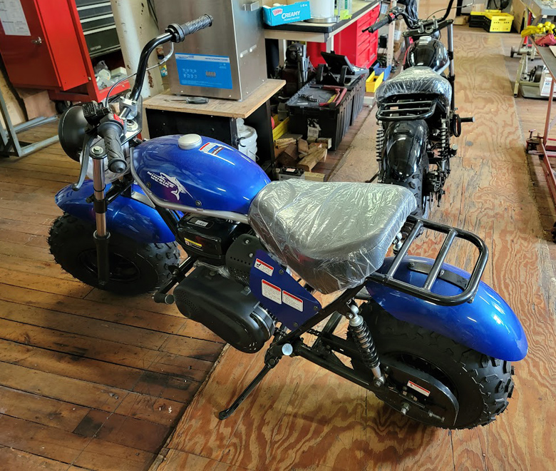 We can expertly restore your current mini bike, whether you own a vintage mini bike or a more recent model. We can also build a modern minibike from scratch - you can choose from various mini bike frame styles, engine types, mini bike wheels, and other upgrades, if desired.