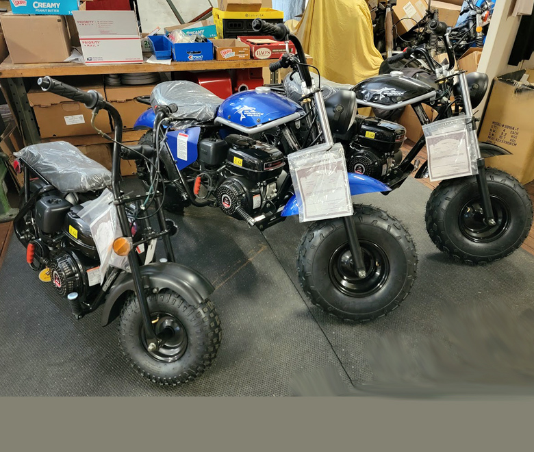 Doug's Cycle Barn is a certified TrailMaster mini bike dealer. We provide complete TrailMaster mini bike sales, parts, and service. There are many Trailmaster Mini bike upgrade options available, as well.